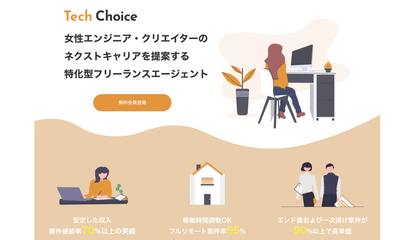 Tech Choice(テックチョイス)は、Vesta株式会社(ヴェスタ株式会社)が運営しているIT・Web系のフリーランス求人案件を取り扱っているフリーランスエージェントです。