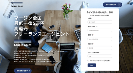 Kangen Agent(カンゲンエージェント)は、株式会社カイマクが運営するIT/Webに特化したフリーランス求人・案件を取り扱っているフリーランスエージェントです。