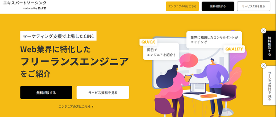 エキスパートソーシングは、株式会社CINCが運営するフリーランス求人・案件紹介をしているフリーランスエージェントです。
