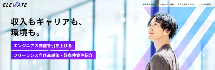 ELEVATEは、フリーランスエンジニア向けの求人紹介サービスで、Java、PHP、Pythonなど多様な言語の案件を取り扱っています。高単価案件が豊富で、非公開案件も多数あり、エンジニアの収入アップをサポートします。週3日や週4日から働ける柔軟な案件やリモートワーク案件も多く、フリーランスのライフスタイルに合わせた働き方が可能です。専任のエージェントが個々のスキルや希望にマッチした案件を紹介し、契約からプロジェクト参画までをサポートします。