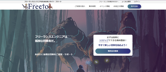 Freetoは、ITフリーランスエンジニア向けの案件紹介エージェントです。