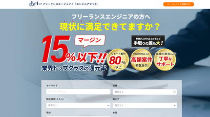 「エンジニアマッチ」は、ITフリーランスエージェントとして、業界屈指の高還元率を提供しています。
