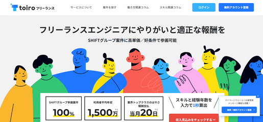 「toiroフリーランス」は、フリーランスエンジニア向けの案件紹介サービスです。