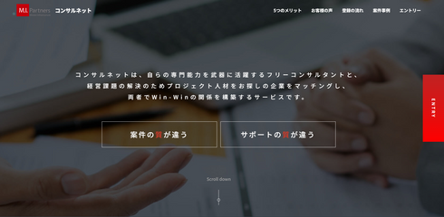 「コンサルネット」は、専門能力を持つフリーランスのコンサルタントと、経営課題解決のためのプロジェクト人材を求める企業とをマッチングする専門エージェントサービスです。