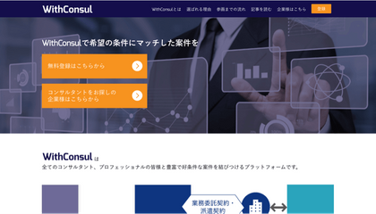 フリーランスとして安心したサポート体制が整っているフリーランスエージェントを探している方、1度もフリーランスエージェントを活用したことがない方、フリーランスとして独立することを不安に思っている方などはWithConsul(ウィズコンサル)に登録してみてはいかがでしょうか。