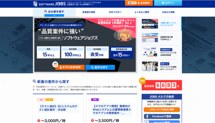 ソフトウェアジョブズ(SOFTWARE JOBS)の特長として、テスト・品質関連フリーランス求人・案件に特化していることが挙げられます。