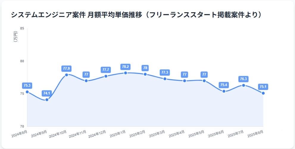 エン・ジャパンが運営する『フリーランススタート』では、サイトに掲載されたすべての求人の情報を集計し、分析を行なっています。今回は、2025年6月度の最新調査を基にシステムエンジニア(SE)案件の単価動向をまとめました。