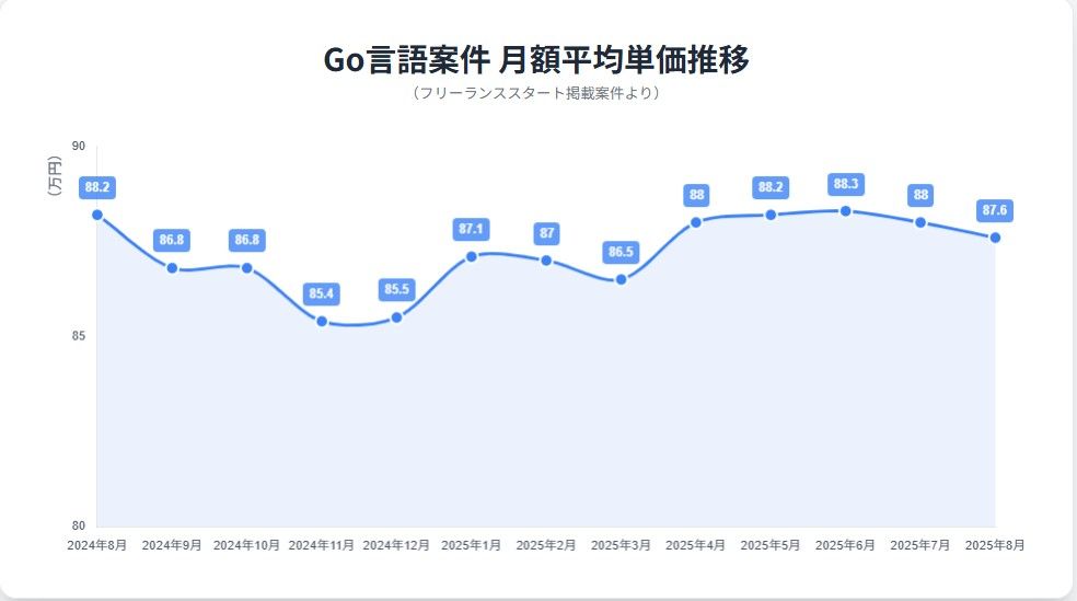 エン・ジャパンが運営する『フリーランススタート』の最新データを基に、2025年7~8月度のGo言語案件の単価動向を分析しました。