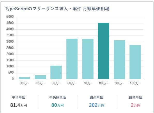 フリーランススタート掲載案件に見るTypeScript案件の単価傾向