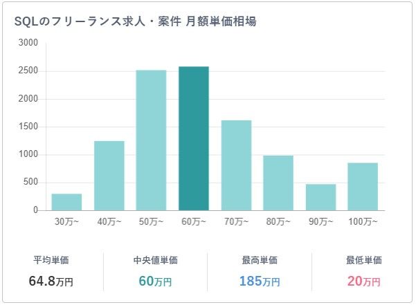 フリーランススタート掲載案件に見るSQL案件の単価傾向