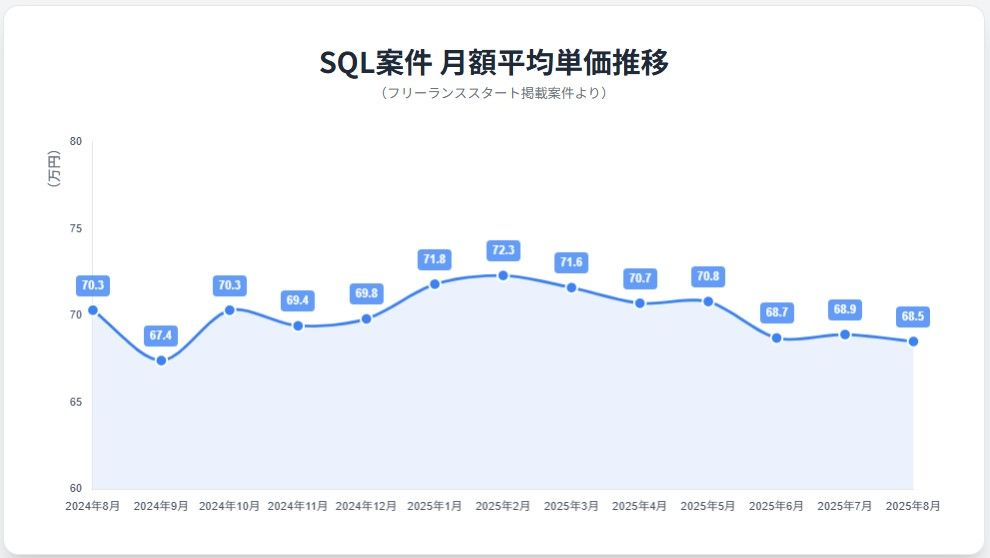 エン・ジャパンが運営する『フリーランススタート』の最新データを基に、2025年7~8月度のSQL関連案件の単価動向を分析しました。