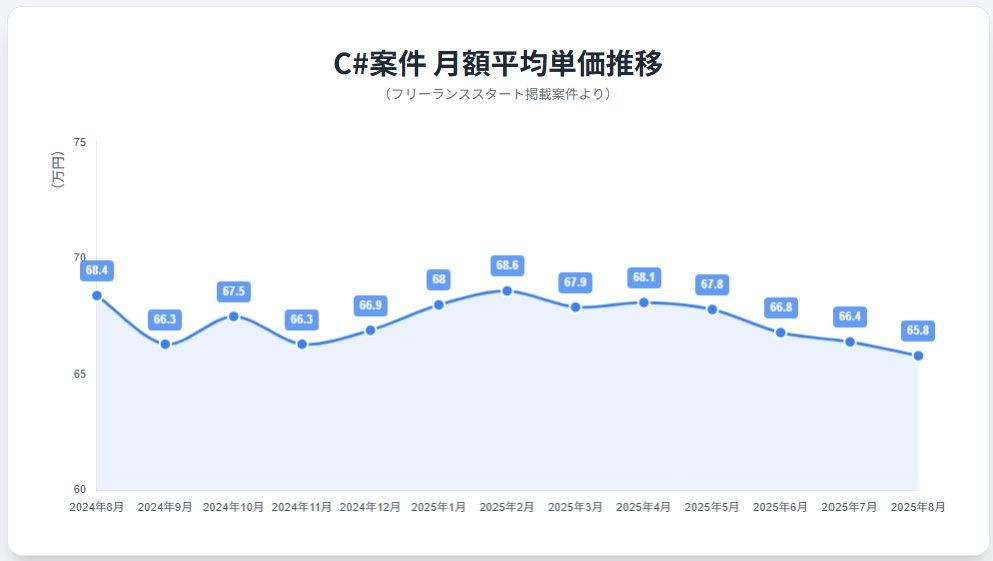 エン・ジャパンが運営する『フリーランススタート』の最新データを基に、2025年7~8月度のC#案件の単価動向を分析しました。