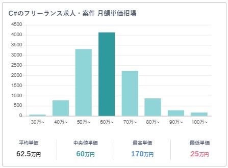 フリーランススタート掲載案件に見るC#案件の単価傾向
