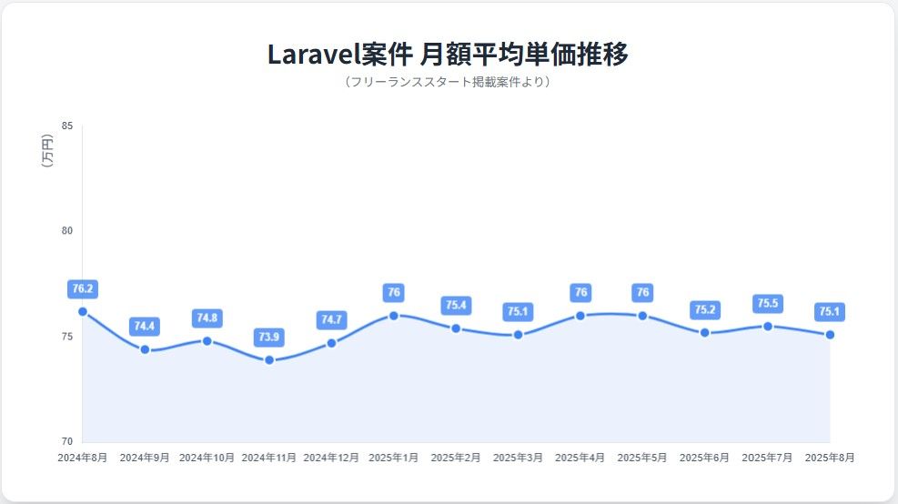 エン・ジャパンが運営する『フリーランススタート』の最新データを基に、2025年7~8月度のLaravel案件の単価動向を分析しました。