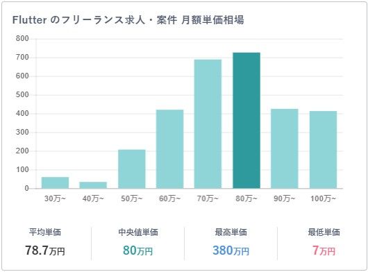 フリーランススタート掲載案件に見るFlutter案件の単価傾向