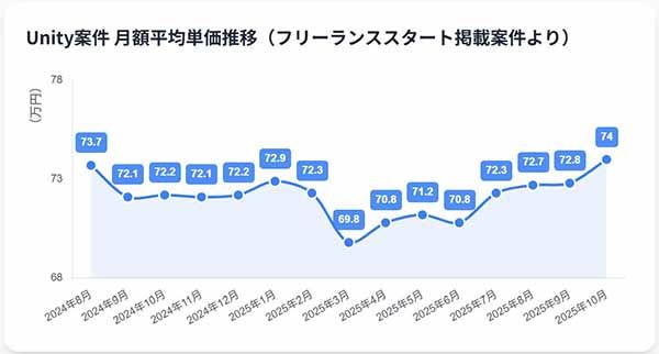エン・ジャパンが運営する『フリーランススタート』の最新データを基に、2025年9月度のUnity案件の単価動向を分析しました。