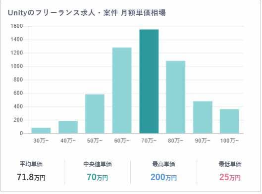 フリーランススタート掲載案件に見るUnity案件の単価傾向